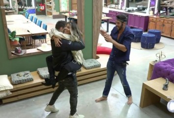 Na reta final de ‘A Fazenda’, Diego, Hariany e Lucas comemoram a chegada à final do rea...