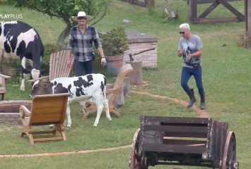 Ao tentar levar o bezerro Chiquinho para o curral, Guilherme Leão e Viny Vieira levaram um verdadei...