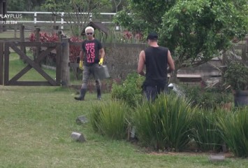 Viny e Guilherme cuidaram do jardim da sede, na manhã desta terça-feira (29). Bem-humorados, os pe...
