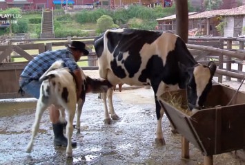 Ler MaisPhavanello tira bezerro da teta da vaca para ordenhar o animal