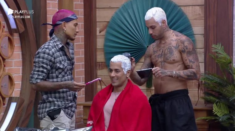 Dynho retoca tintura no cabelo de Tiago - A Fazenda 13