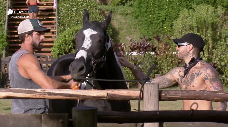 Gui Araujo ajuda Erasmo Viana a pentear o cavalo Colorado - A Fazenda 13