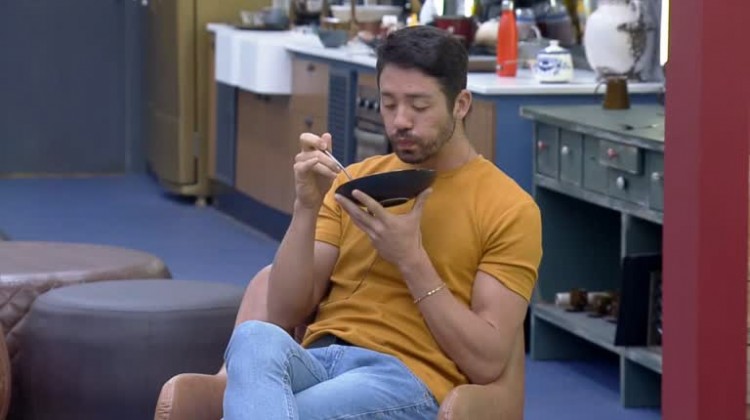 Rico acorda antes do despertador e come mingau na sala - A Fazenda 13