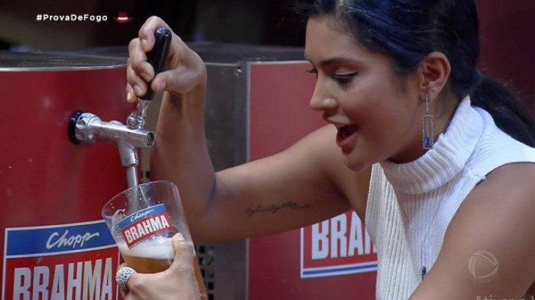 Divididos em dois grupos, os peões tiveram que tirar um chopp geladinho com aquele colarinho, que só a Brahma tem, e encher um copo gigante.