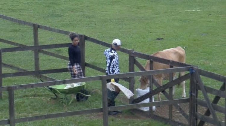 Sthe tenta distrair a Teimosinha, mas a vaca percebe o truque e corre atrás de Dynho - A Fazenda 13