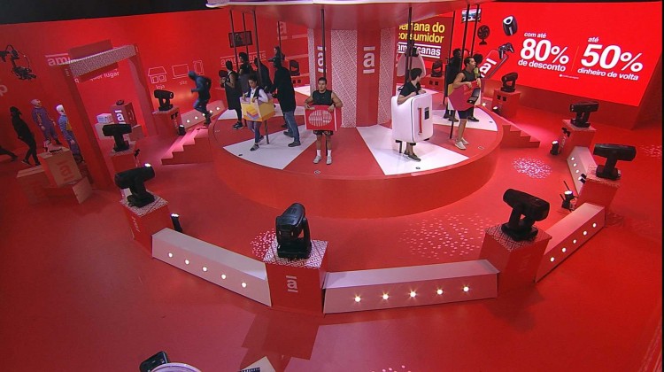 "Cada um de vocês representa um produto da semana do consumidor Americanas. A regra da prova é simples: É uma prova de resistência, vocês devem resistir. O carrossel vai começar a girar e vocês devem permanecer o tempo todo em suas posições, presos ao equipamento de segurança. A cada parada do carrossel um produto vendido no app Americanas será escaneado e a sua oferta aparecerá no telão. Vence a prova quem resistir por mais tempo. Além da liderança, o vencedor vai ganhar 20 mil reais em compras no app Americanas", fala Tadeu.