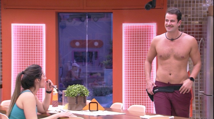 Gustavo deu adeus à barba e mudou o visual. O curitibano manteve somente o bigode e surpreendeu Laís durante o almoço.